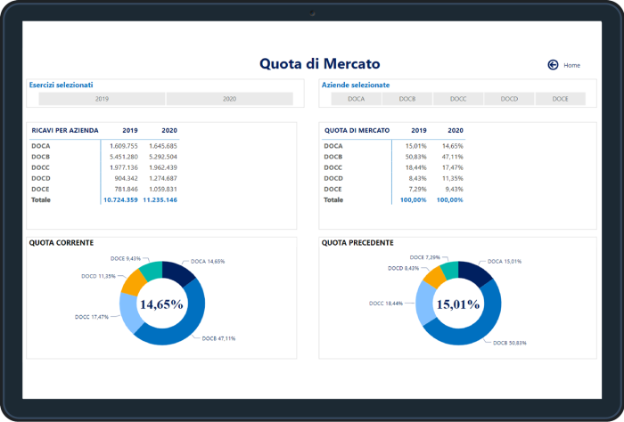 - Calcolo e confronto annuale delle quote di mercato