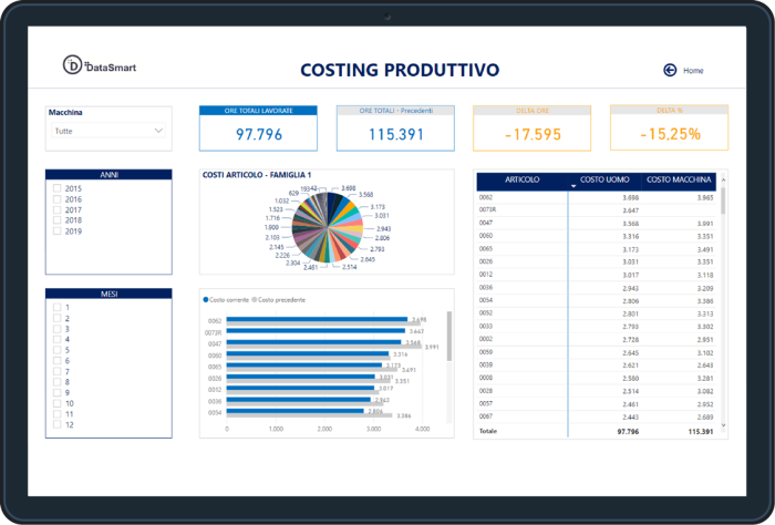 DataSmart propone un servizio unico di costruzione del costo di prodotto capace di coniugare la competenza e l’esperienza dei propri consulenti con la potenza tecnologica del software che permetti di importare, elaborare e relazionare più archivi e fonti dati differenti.
