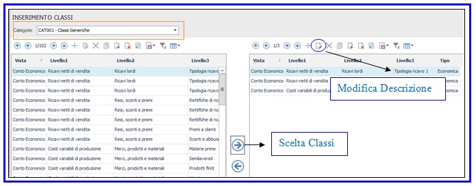 Consente di inserire le riclassifiche Economiche dei conti, scegliendo dalle categorie prefigurate di DataSmart.
