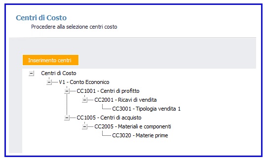 Consente di inserire i Centri di Costo, scegliendo dalle categorie prefigurate di DataSmart.