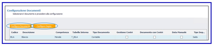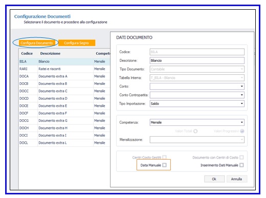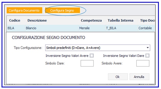 Nella tabella di modifica del Documento “Bilancio” è possibile definire se: