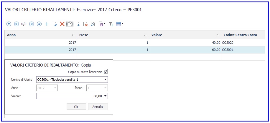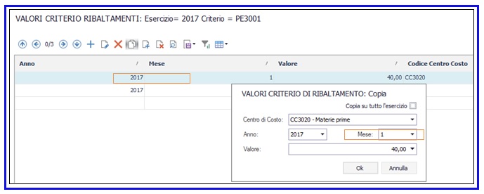 Se il criterio inserito sul primo record deve essere replicato su altri periodi, DataSmart consente una duplice funzione di copia.