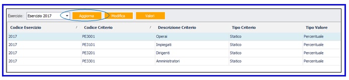 Il sistema crea i centri di ribaltamento per l’Esercizio selezionato, visualizzandone nella griglia le specifiche