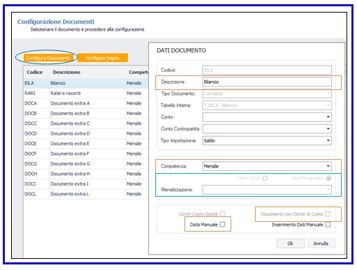 La configurazione dei Documenti prevede di effettuare 2 step: