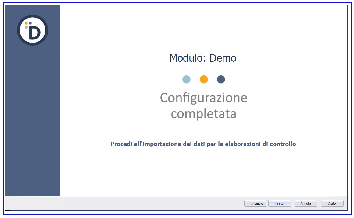 Terminati i sei step di configurazione, il sistema è pronto per eseguire l’importazione dei valori
