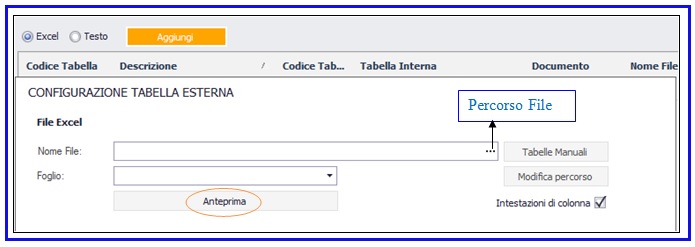 È possibile controllare la correttezza della connessione grazie al pulsante “Anteprima” che consente di visualizzare in formato DataSmart il file esterno in tutte le sue componenti